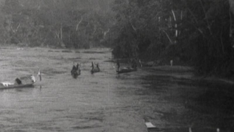 Zwart/wit beelden van schaars geklede mensen die over de rivier peddelen. Die beelden neem ik met me mee en ik ga het boek van Reinier Artist lezen: Indiaans verhaal: In de schaduw van twee beschavingen.